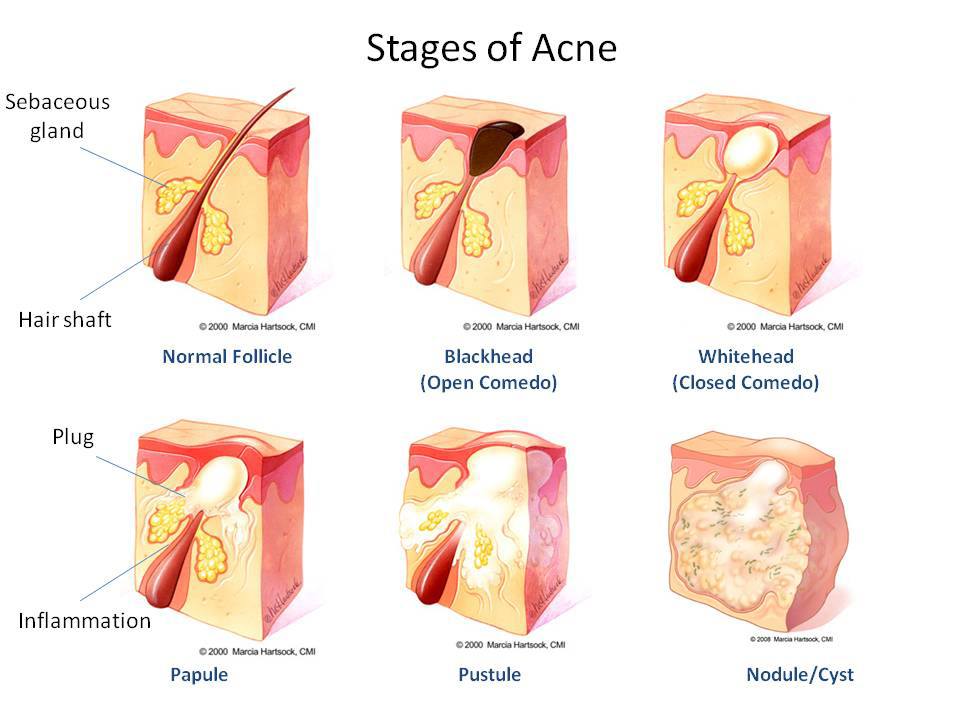 6) Medical procedures including Subsicion / Fraxel Laser Resurfacing / RF Fractora Resurfacing / Dermal Fillers / Fat Grafting for Acne ScarringStages of Acne